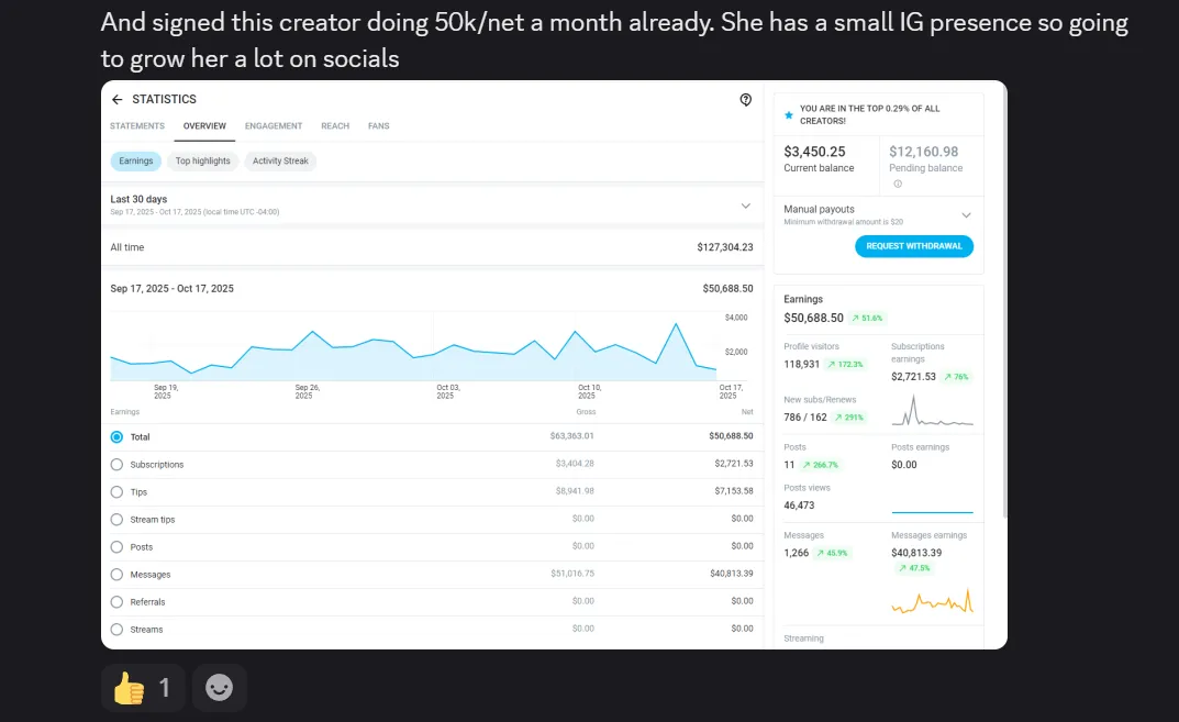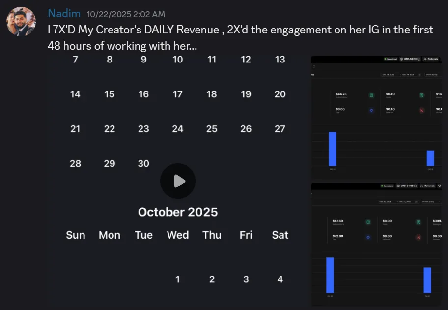 This isn’t about learning to be a creator yourself, chasing short-lived growth hacks, or doing some cash grab that will fade away overnight. The Full Stack Manager System is about building a legitimate, long-term business in the space - one that grows your clients into real brands and allows you to command 50% of the revenue by becoming irreplaceable.